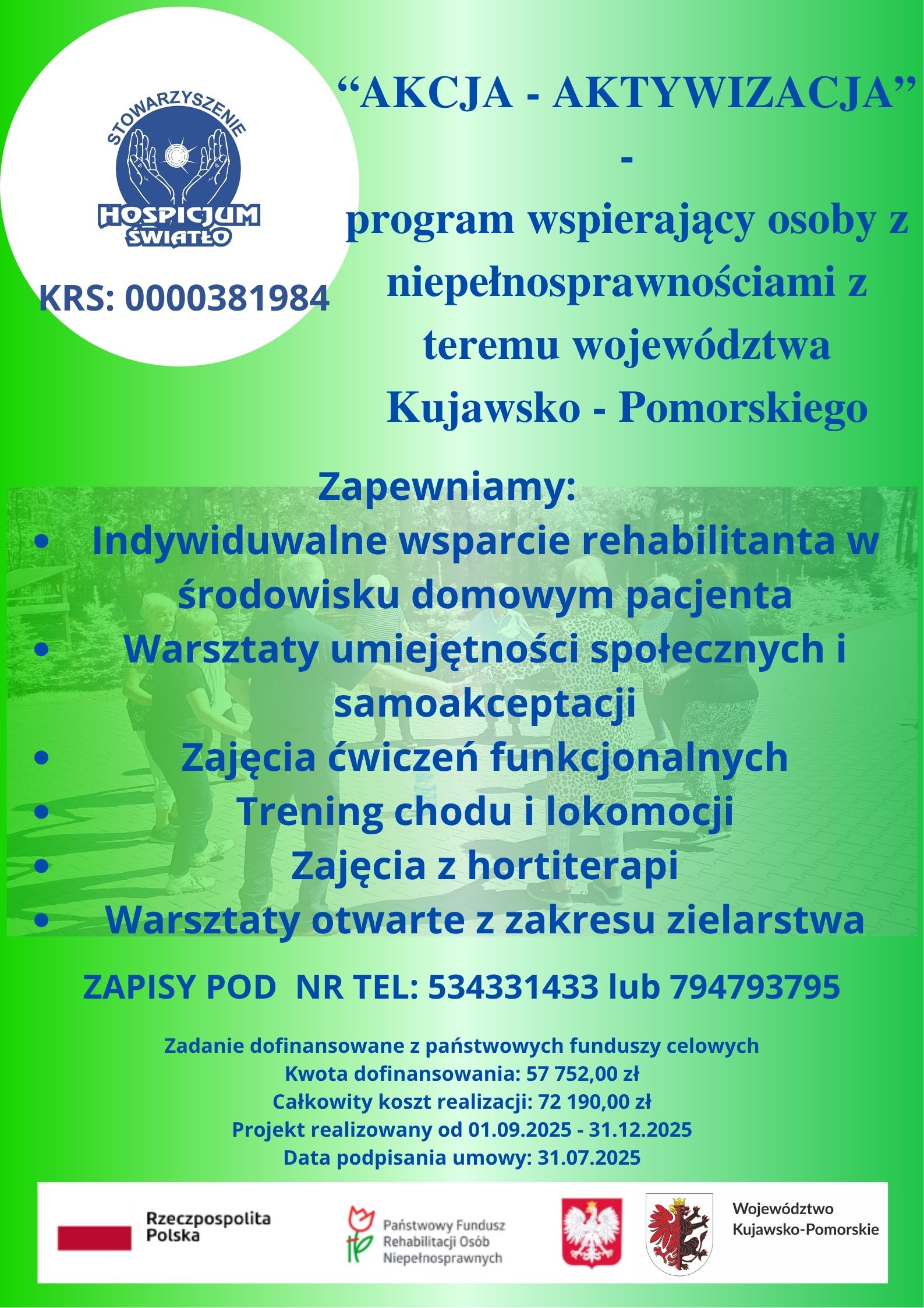 “AKCJA – AKTYWIZACJA” – program wspierający osoby z niepełnosprawnościami z terenu województwa Kujawsko – Pomorskiego