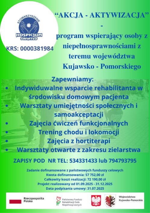 “AKCJA – AKTYWIZACJA” – program wspierający osoby z niepełnosprawnościami z terenu województwa Kujawsko – Pomorskiego
